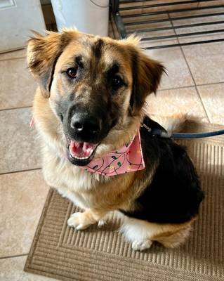 Nala is a stunning 60-pound black and tan Australian Shepherd/Shepherd mix, approximately 8-9 months old.
